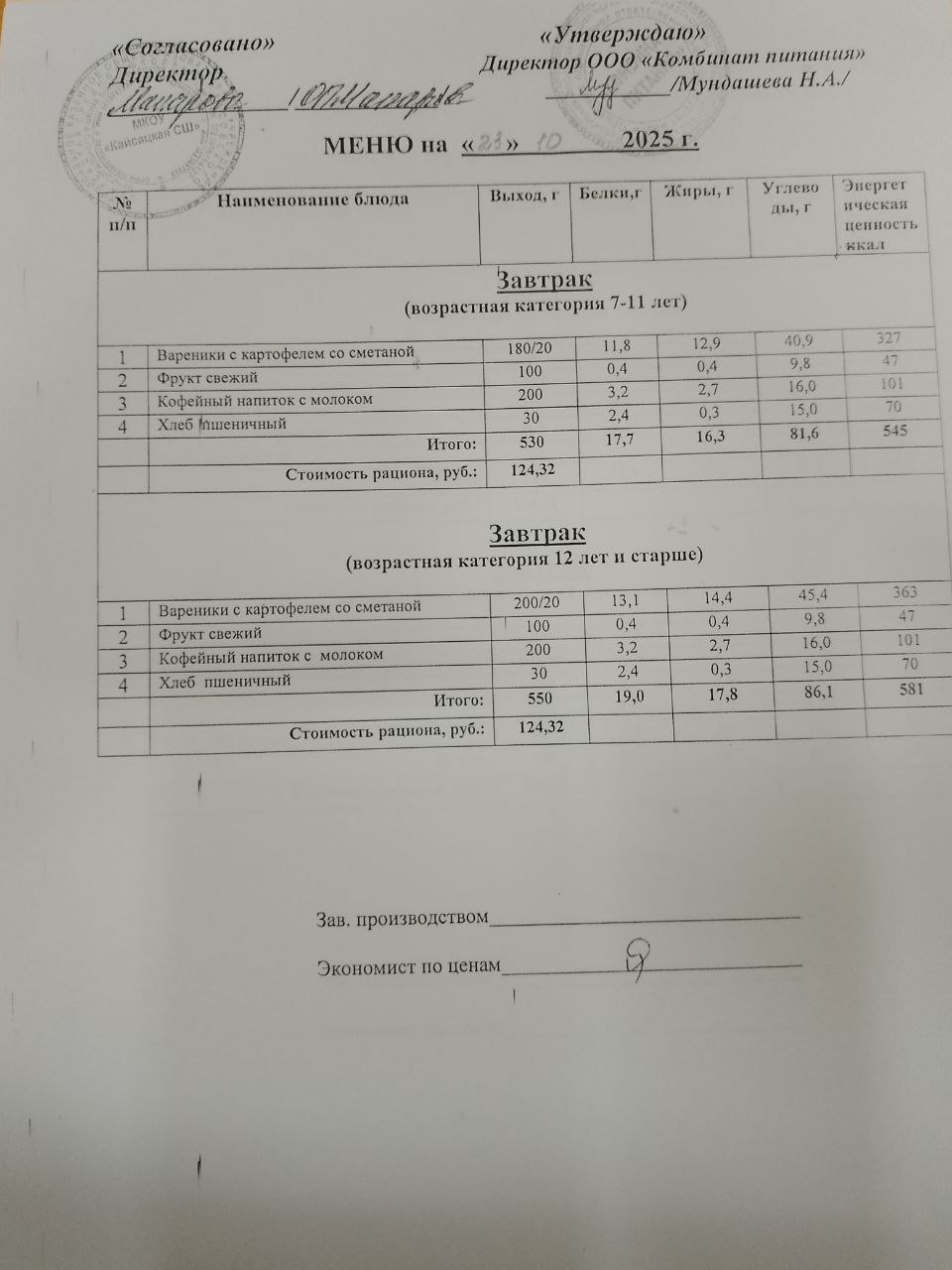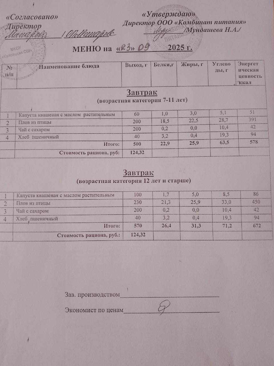 ЕЖЕДНЕВНОЕ МЕНЮ